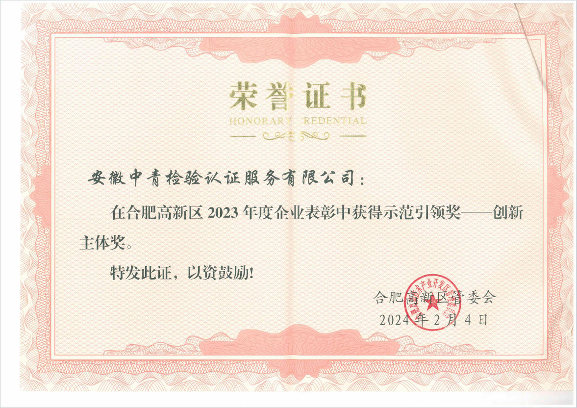• 祝賀!中青認(rèn)證 評(píng)選為合肥市2024年(2023年度)勞動(dòng)保